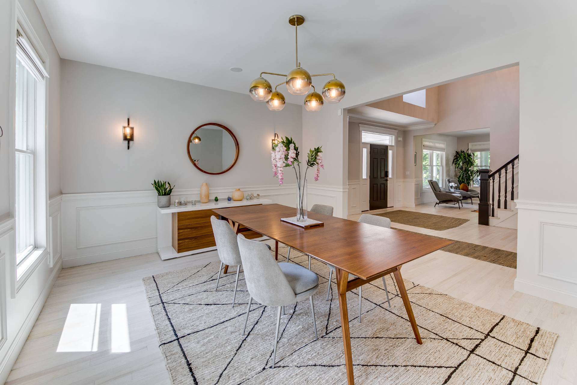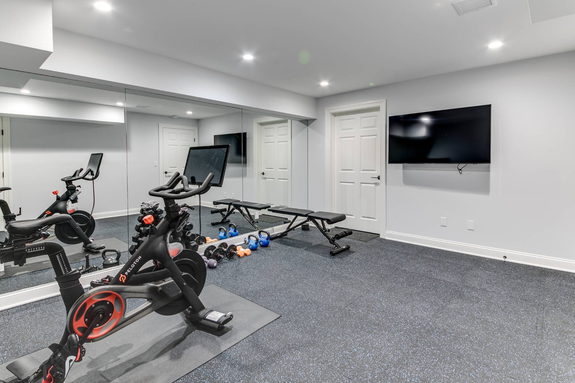 The first floor includes a gracious entry, formal dining room, and an open-concept great room with a large living room and eat-in kitchen outfitted with premium appliances. An additional living room has walk-out access to the stunning screened-in porch overlooking the gorgeous grounds beyond. Upstairs, the ensuite primary suite is filled with natural light, an oversized luxe bath, a glass-walled shower, dual vanity, and a free-standing soaking tub. Completing this level are 3 additional guest bedrooms with tall ceilings and 2 full baths. The elegantly finished lower level is made for everyday luxury living with a large media room, home gym with Peloton, plus a 5th bedroom and large bath with steam shower.