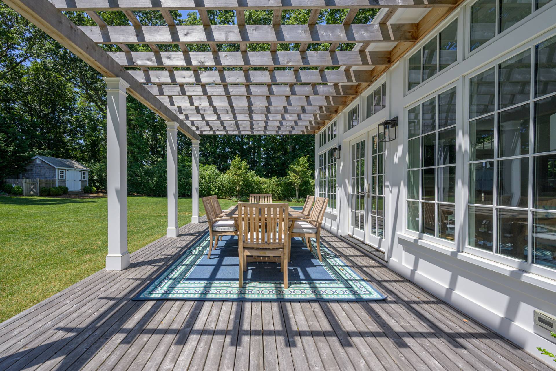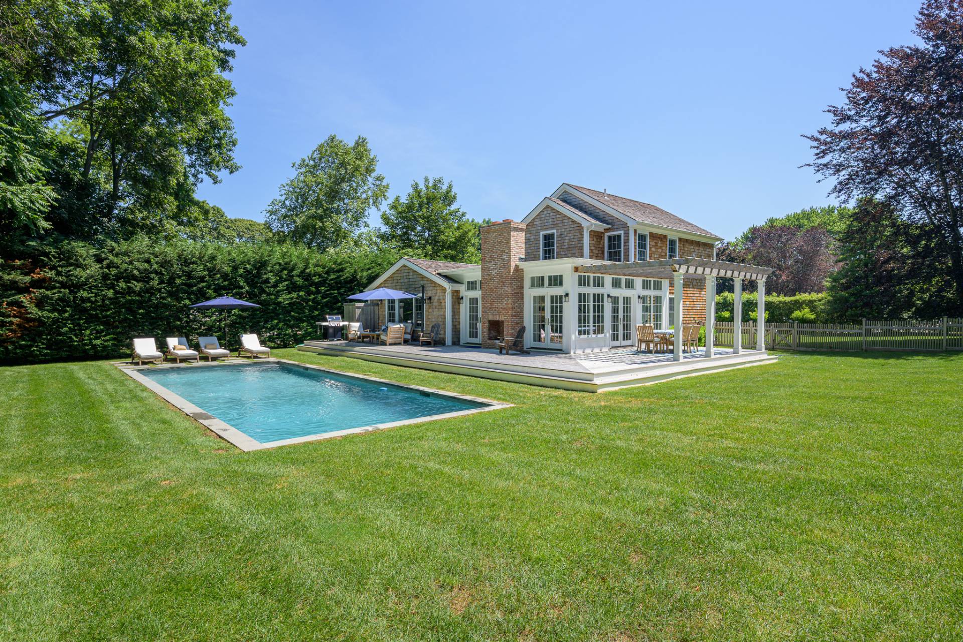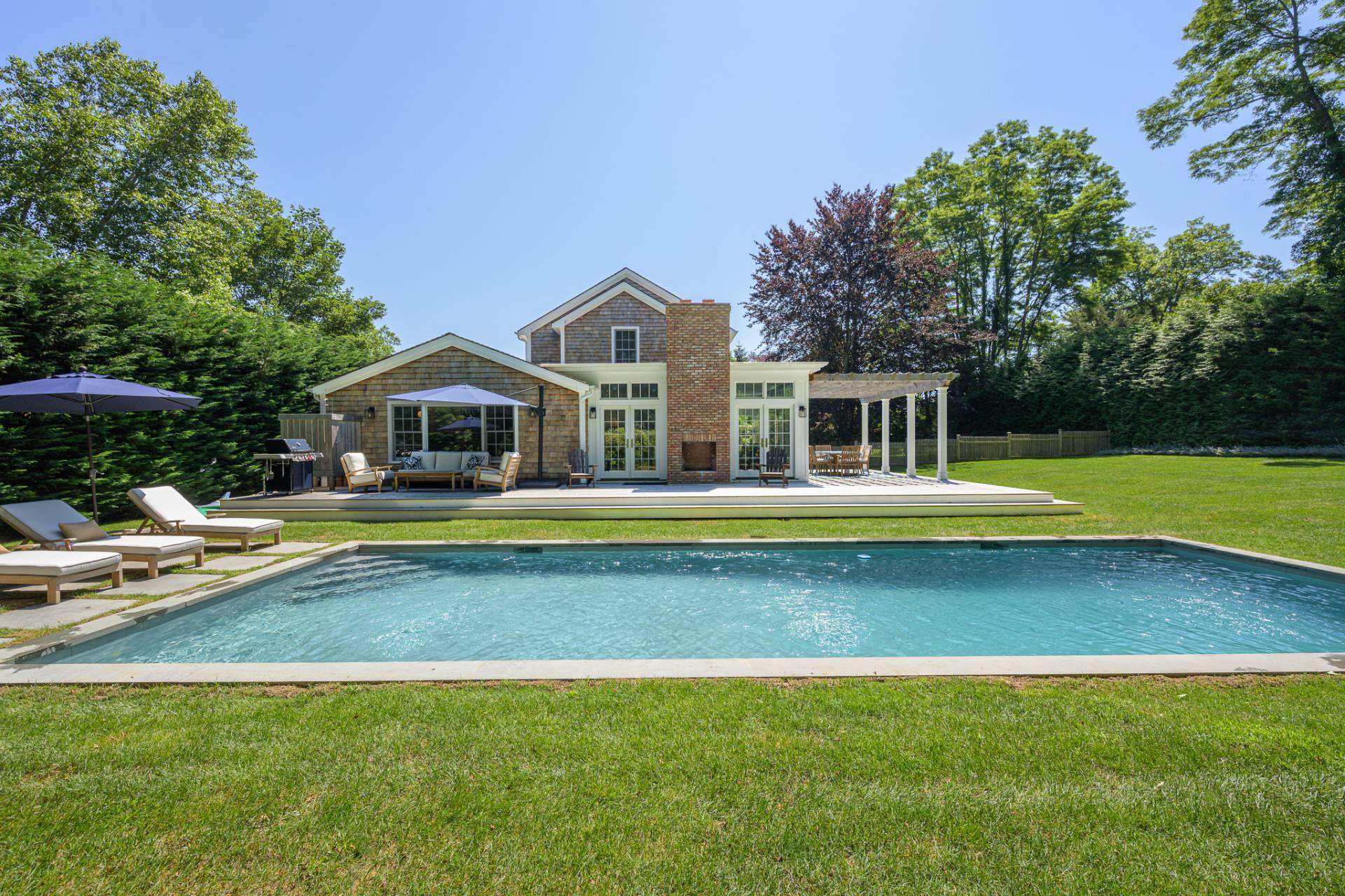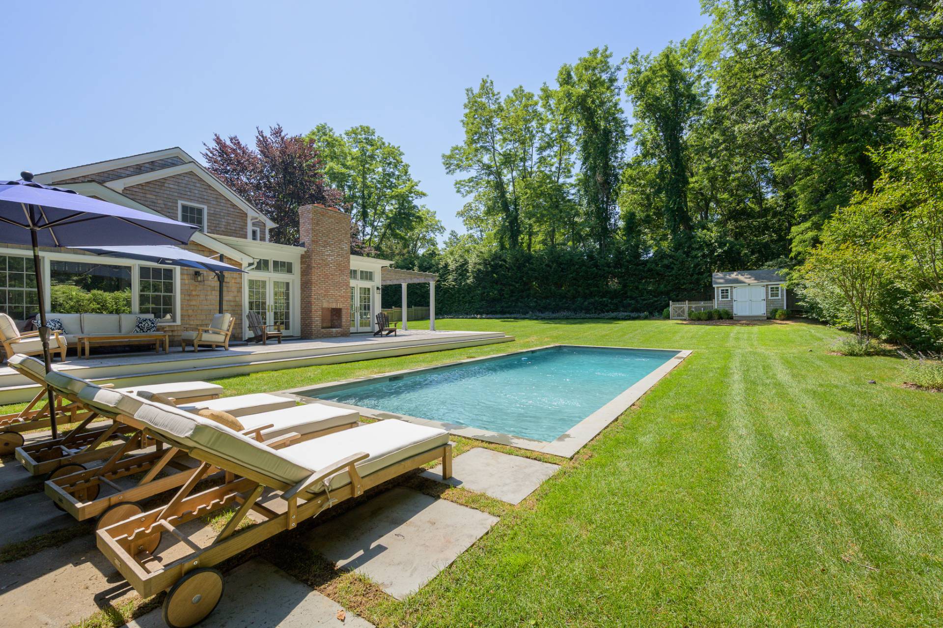 The outdoor areas are a sunny oasis, fully fenced and private, with a large heated pool, spacious patio for dining al fresco and sun lounging, exterior fireplace, ample lawn space, and an outdoor shower. This desirable location is peaceful and private with easy access to Southampton Village with boutique shops, dining, cultural experiences and world-famous white sandy ocean beaches all within reach.