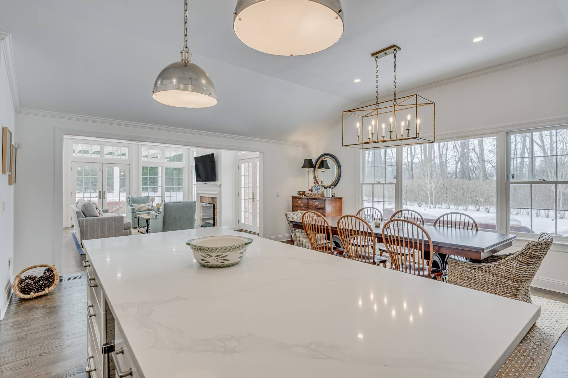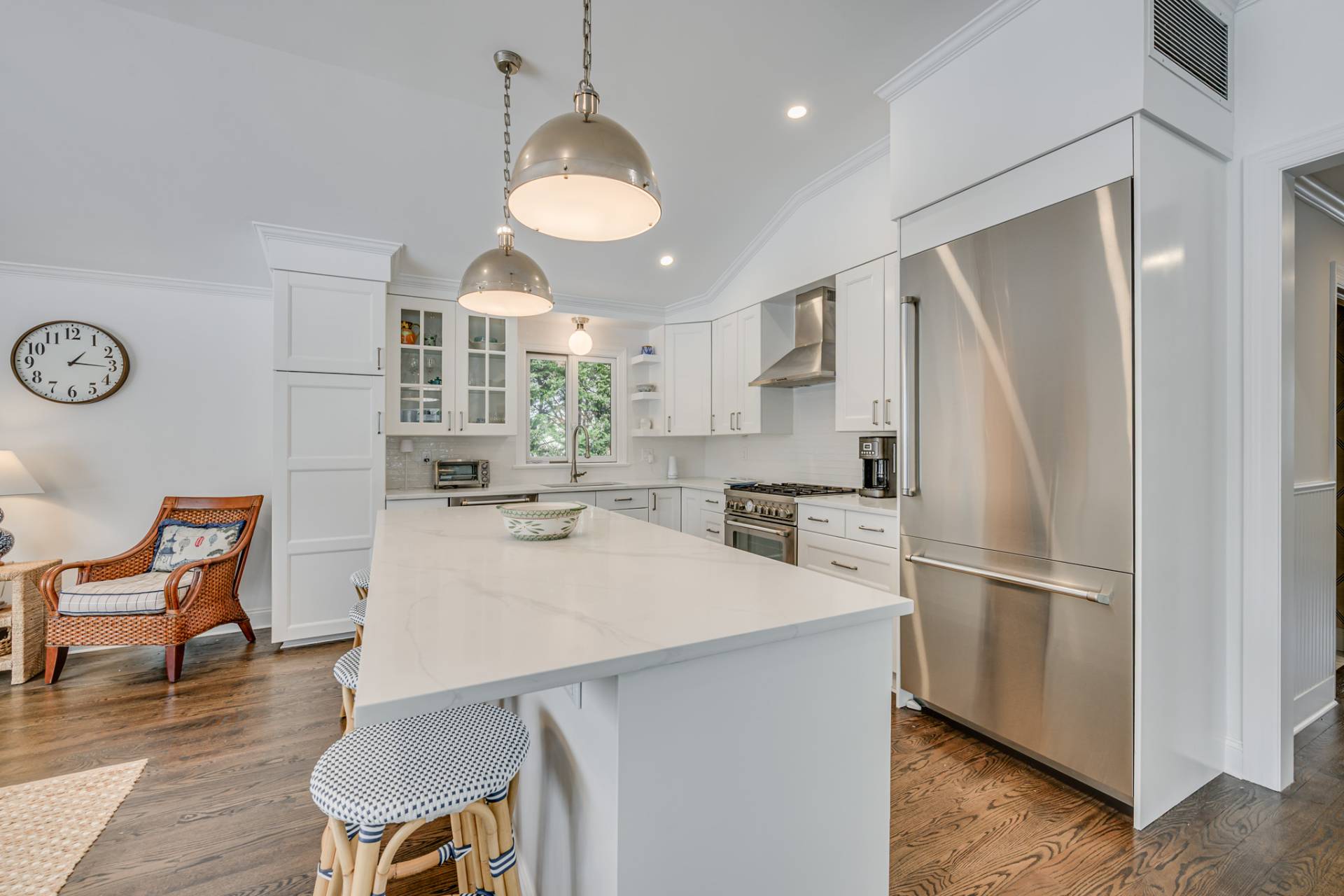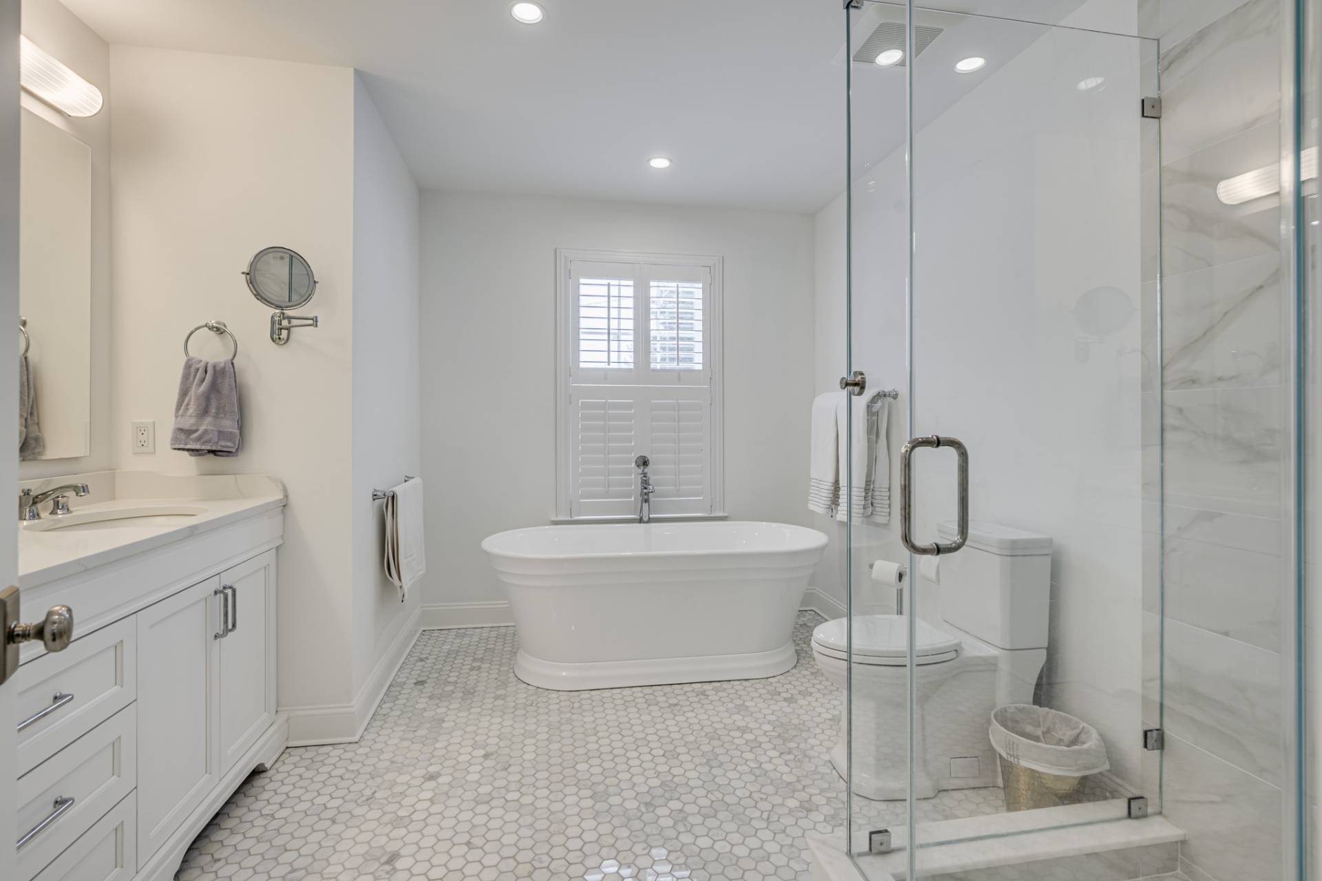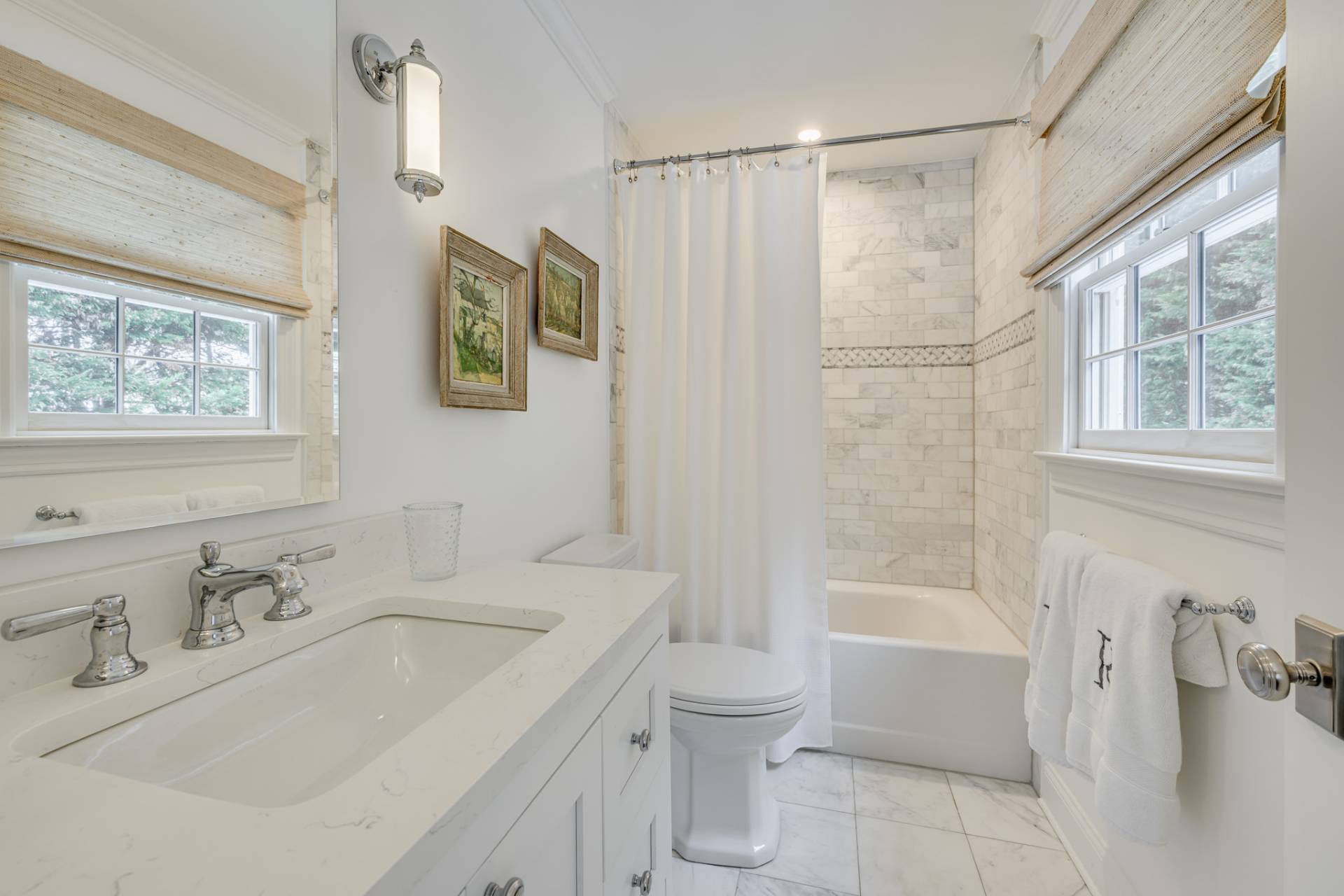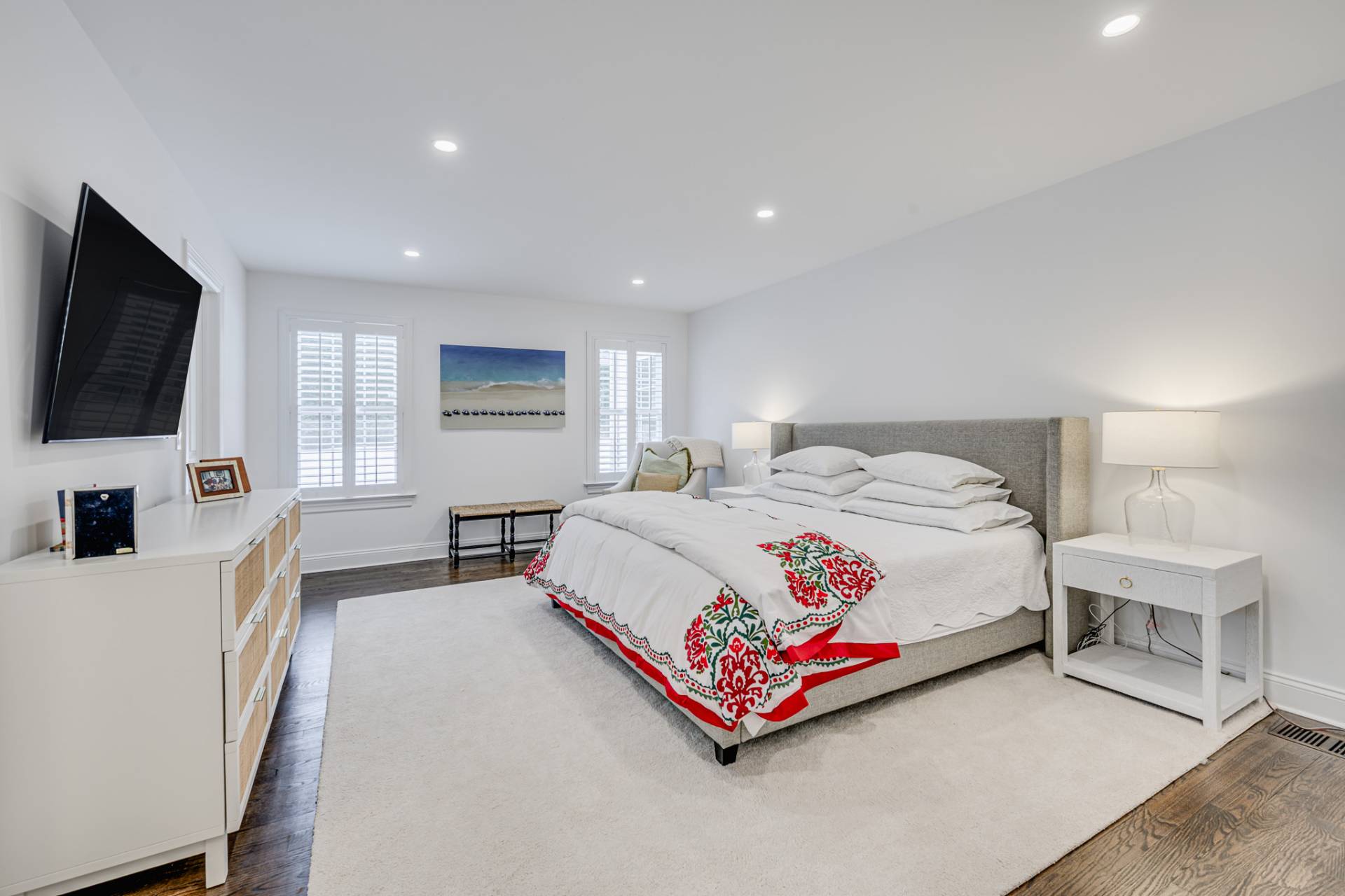 Past the charming front porch find warm and inviting interiors bathed in natural light throughout the 2,500 +/- sq. ft. of living space with 4 bedrooms, 3.5 baths, and a heated 40'x15' gunite pool. Inside, find bright and open living spaces with high ceilings and beautiful hardwood floors throughout. Graceful living spaces are ready for relaxation and restoration as well as elevated entertaining. Enjoy nights by the cozy fireplace and delicious meals with an eat-in kitchen outfitted with premium appliances and dedicated dining space. The ensuite primary is its own luxurious escape boasting a luxe bathroom with glass-lined shower and freestanding soaking tub. Each of the 3 guest bedrooms is well-sized and ready to accommodate and impress loved ones and guests. Below, the partially finished lower level adds additional and private space for games and recreation Easy indoor-outdoor living is all around, highlighted by multiple sets of French doors leading to the rear grounds and patio.