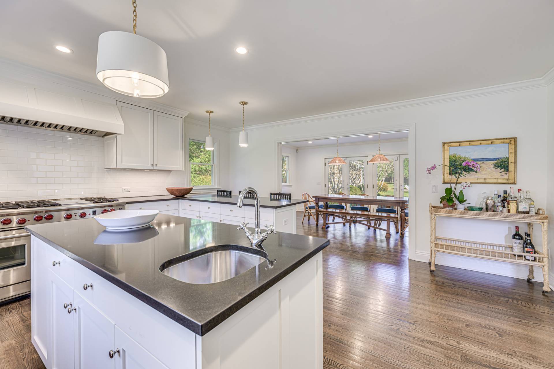 Outside, find a covered patio for dining al fresco and a large sparkling gunite pool. Just minutes from Southampton Village and Cooper's Beach with a convenient North-South orientation to the Village and Beach, means more time is spent at the Village and the Beach instead of on the road.