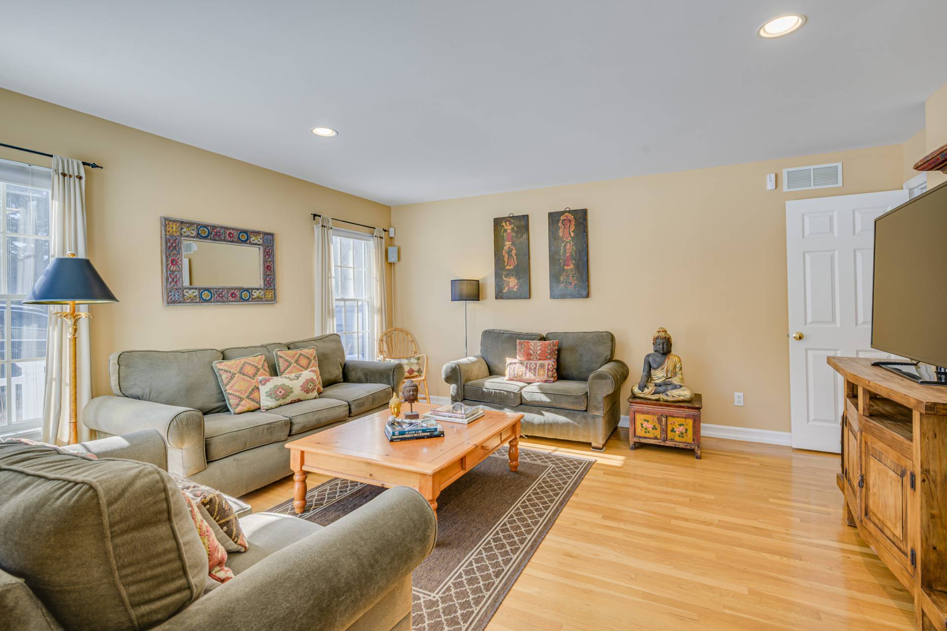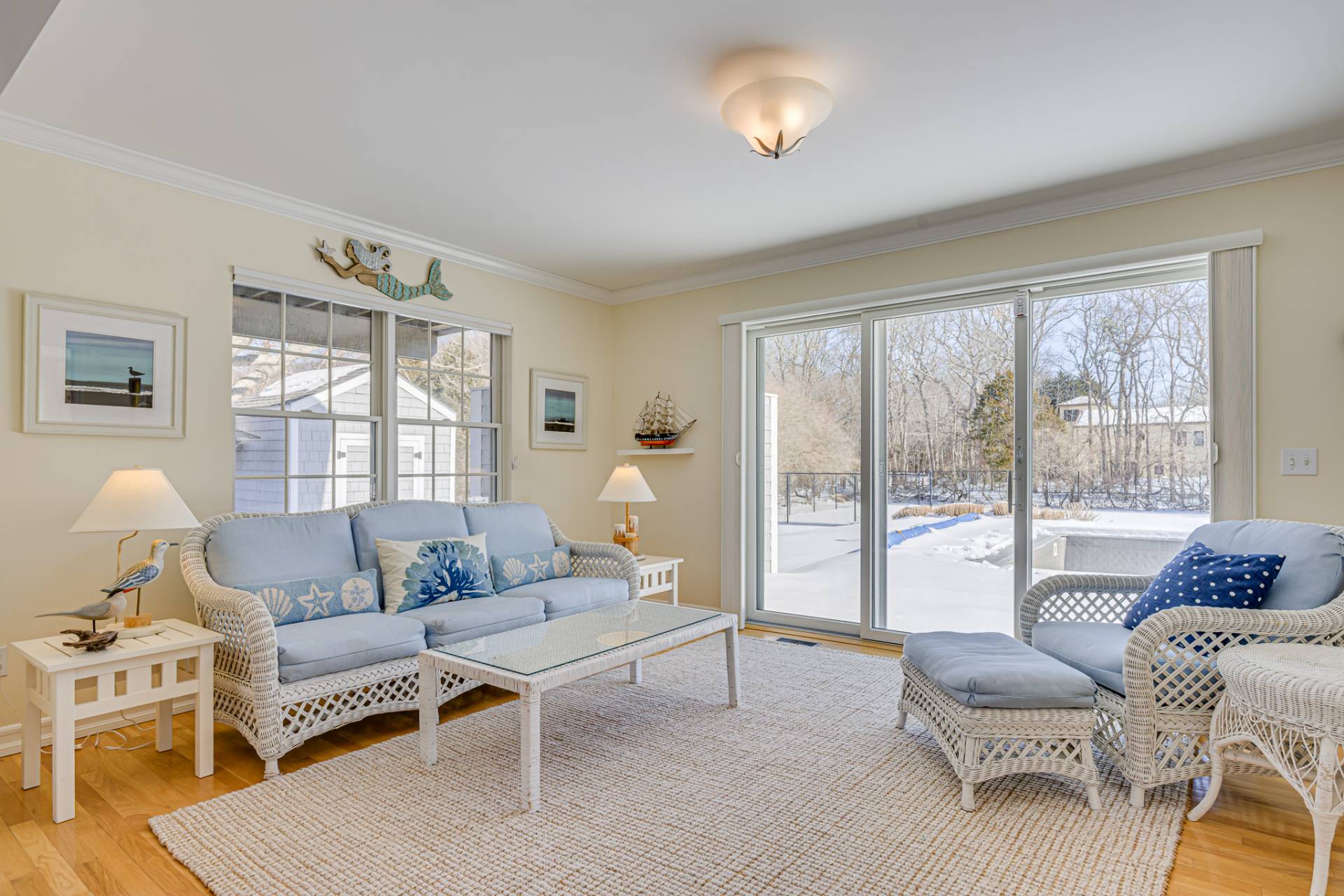 The home is ready for year-round luxury living, featuring an attached 1-car garage and a partially finished lower level offering an additional 1,435 +/- SF. The space includes a recreation area with a dry bar, a bonus area suitable for media or gym use, and a full bath. Outdoors, the sunny backyard is made for long, sun-drenched afternoons and starlit evenings: dine al fresco on the patio beneath a retractable awning, rinse off in the outdoor shower, and enjoy the heated pool set beside the tennis court. Lush gardens line the court, and the well-maintained grounds create a tranquil, bucolic backdrop.