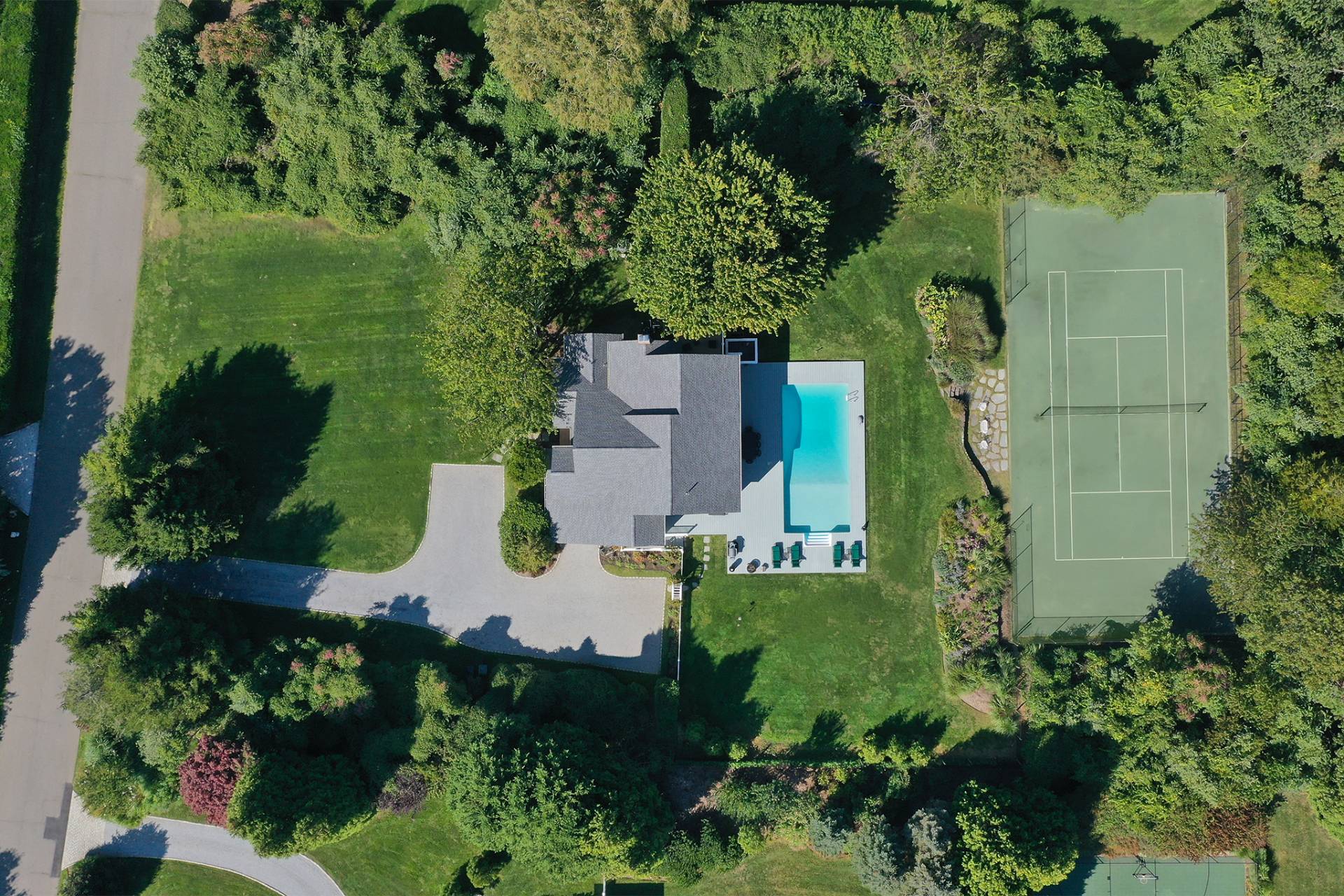 On 1.4 beautifully landscaped acres, set on a coveted court in Water Mill and surrounded by substantial homes and estates, this meticulously maintained 4-bedroom, 5-bath residence pairs stylish interiors with resort-style amenities, including a heated pool and private tennis. Peaceful and private with mature plantings and vibrant summer blooms, it's a picture-perfect setting for effortless Hamptons living.
